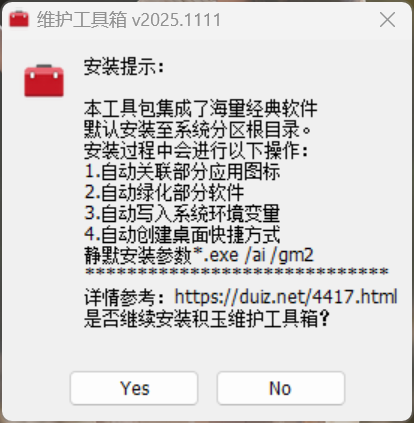 转载至队长的Blog,这款工具箱的灵感来自死性不改系统包和图吧工具箱;前者直接内置到系统包,安装系统的时候自动部署至系统根目录内,在运维过程中非常方便。由于一些各种各样的原因,单独整合了一下自用的一些经典小工具,采用死性不改的制作原理打包了一份。